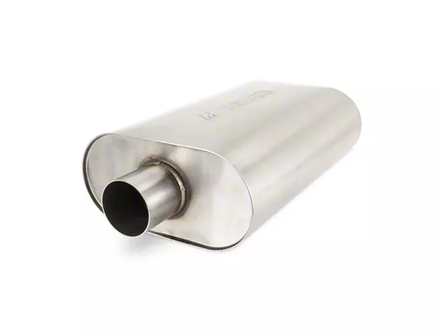 Less Volume Continuous Flow. Boost your vehicle's exhaust system with the Mishimoto Center Muffler (2.50-Inch Inlet/2.50-Inch Outlet, Brushed) and experience a powerful transformation in both sound and performance. Measuring at 20 inches in length, 9.6 inches in width, and 4.7 inches in height, this center muffler features a straight-through perforated core design, providing continuous flow and reducing exhaust volume. The 2.50-inch inlet and outlet make it compatible with a wide range of vehicles, and the center inlet and outlet design simplifies pipe routing for a hassle-free installation.
