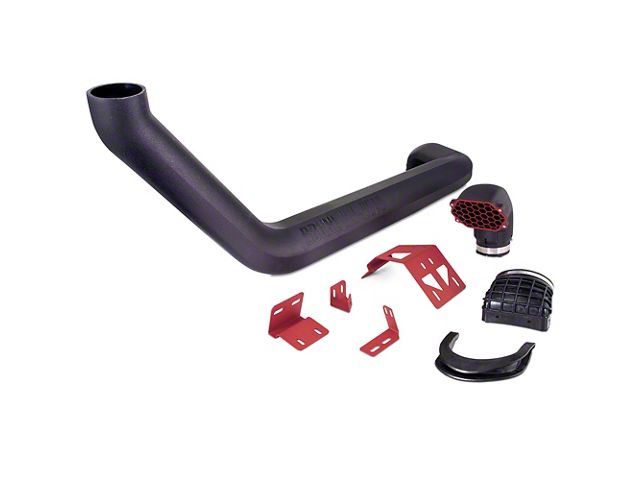 Muscle Through Any Obstacle. Crossing a fender-deep river or stream will normally put an end to your off-road adventure. Not so if you equip your Wrangler with the Mishimoto Borne Off-Road Snorkel with Micro-Wrinkle Red Brackets. This snorkel is designed to raise your air intake to your roofline, making it all but impervious to water incursion. This allows you to cross deeper bodies of water that would stop most other vehicles in their tracks. This higher intake location also prevents incursion of sand and snow, so you can take on a winter or desert adventure without work. What’s more, this higher air intake location means generally cleaner air is supplied to your engine, potentially prolonging the service life of your air filter.