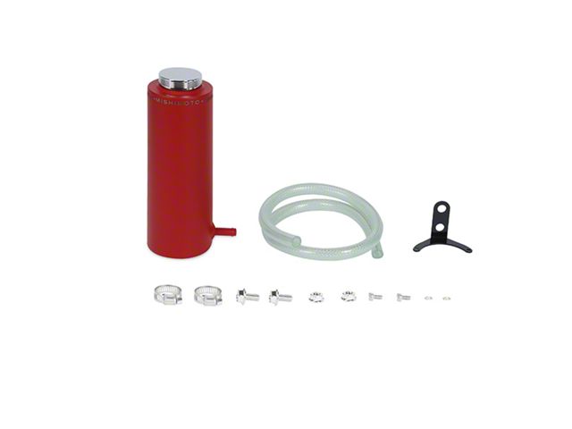 Red Metal Coolant Reservoir. Toughen-up the coolant reservoir on your vehicle using this aluminum replacement part and prolong the lifespan of your coolant holder significantly. This tank has a stylish aluminum fill plug-up top and uses a red anodized finish for added strength and style. This part is designed to fit most vehicles and works as a powerful replacement for trucks and more.