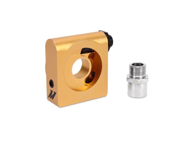 Dependable Engine Oil Cooler Adapter. Couple your engine oil cooler setup with your current oil lines using this Mishimoto engine oil cooler adapter. This sandwich plate adapter helps take the oil lines and connect them along with a thermostat to your oil cooler to help with temperature monitoring and to route oil where it needs to go effectively.