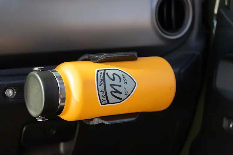 Convenient Hydration on the Go. The MitchSpecial Passenger Grab Handle Water Bottle Holder is a game-changer for Jeep Gladiator JT owners seeking convenient hydration during their off-road escapades. Meticulously designed to seamlessly integrate with your vehicle's passenger grab handle, this innovative accessory offers effortless access to your favorite beverages. No more fumbling around for a drink or sacrificing valuable storage space. With the MitchSpecial holder, your water bottle is always within arm's reach, ensuring optimal hydration and enhancing your overall driving experience.