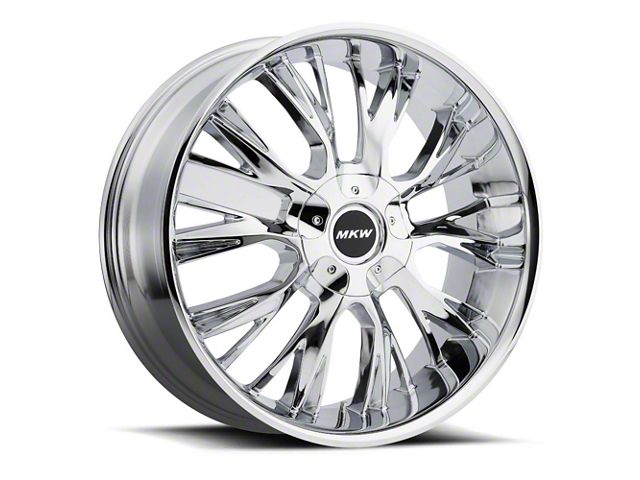 The 22x9 MKW M122 Chrome 6-Lug Wheel is completed in a high-quality chrome finish that is accomplished in a 3-step plating process. First layer is copper, which creates a smooth foundation. Next is nickel for hardness and durability. Finally, chrome for brightness.