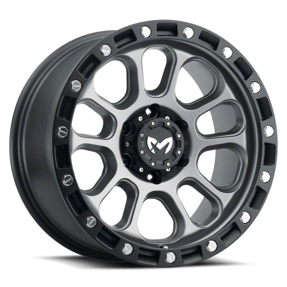 MKW Offroad M204 Matte Gray 6-Lug Wheel; 17x9; -12mm Offset This wheel features sophisticated styling that enhances your vehicle's appearance with refined design elements and premium craftsmanship. Its distinctive aesthetic provides an upgraded look that complements a wide range of vehicles. The thoughtful engineering ensures a proper fit while delivering lasting visual appeal.