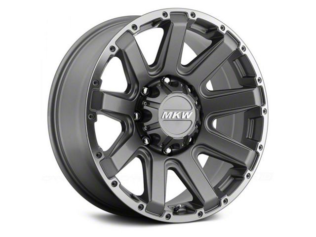 MKW Offroad M94 Anthracite Gray 6-Lug Wheel; 20x9; 10mm Offset. The MKW Offroad M94 Anthracite Gray 6-Lug Wheel; 20x9; 10mm Offset features a sleek and modern design that enhances the overall aesthetic of any vehicle. Its brushed gunmetal finish adds a touch of sophistication and complements various vehicle styles. This wheel's premium construction ensures durability and a robust appearance.