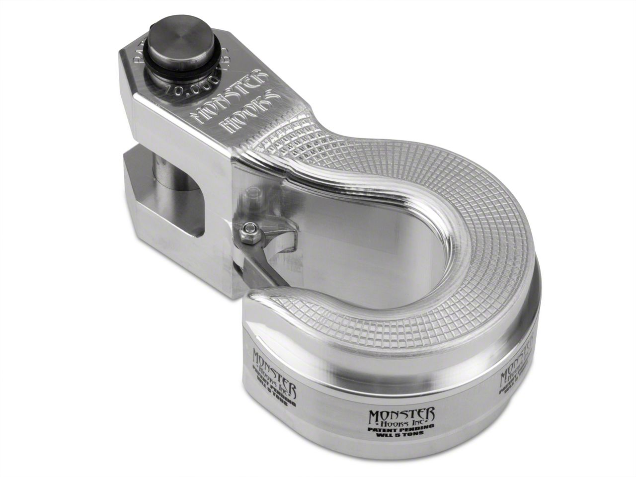 Superior Design. The Monster Hook Swivel is designed to be 99% faster than regular ¾inch pin shackle hooks by providing a latching mechanism instead of unscrewing in order to loop your tow strap over. This shackle replacement is crucial when time is of the essence and perfect for emergency response and off road recovery teams.
