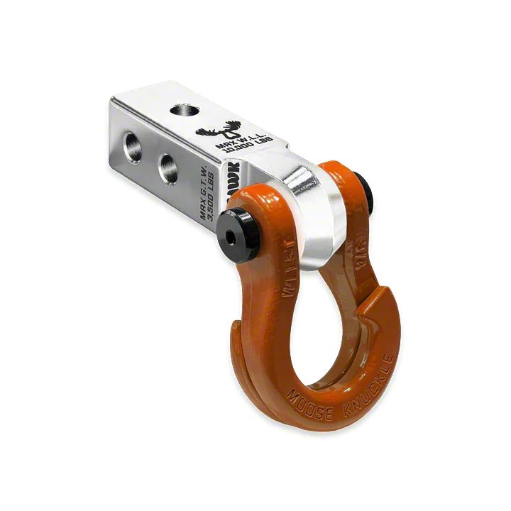The Jowl Recovery Shackle fits any 2.0 or 2.5 inch D-Ring tow shackle receiver hitch bracket mount with a 7/8" (0.875") pin hole and a mount width of 1-1/4" (1.25") or less.