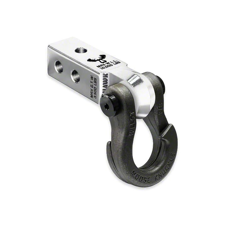 The Jowl Recovery Shackle fits any 2.0 or 2.5 inch D-Ring tow shackle receiver hitch bracket mount with a 7/8" (0.875") pin hole and a mount width of 1-1/4" (1.25") or less.