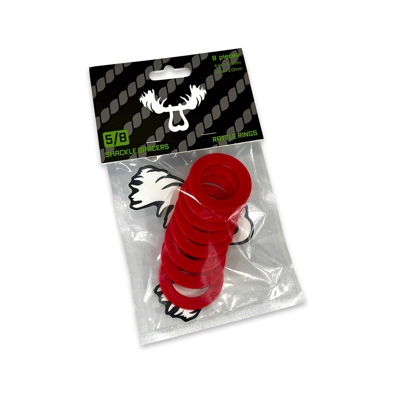 Noise-Reducing Off-Road Solution. The Moose Knuckle Offroad Rattle Rings Shackle Isolator Washers are engineered to eliminate unwanted noise and vibration from your recovery shackles. Designed specifically for use with 5/8-inch shackles, these isolators create a quiet, stable connection between the shackle and your bumper or recovery point, making them a smart addition to any off-road build. They come in a vibrant flame red finish that adds a custom touch to your rig.