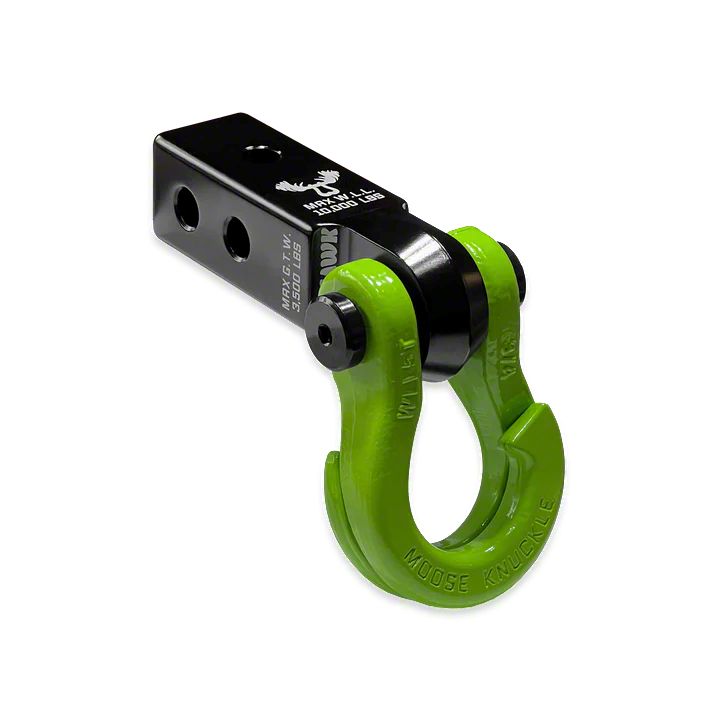 Superior Recovery Gear. Upgrade your recovery toolkit with the Moose Knuckle Offroad Jowl Split Shackle and Mohawk 2.0 Receiver Combo. This rugged set combines functionality and style, with a durable build and eye-catching Black Lung/Sublime Green color, ensuring you’re prepared for tough recovery situations.