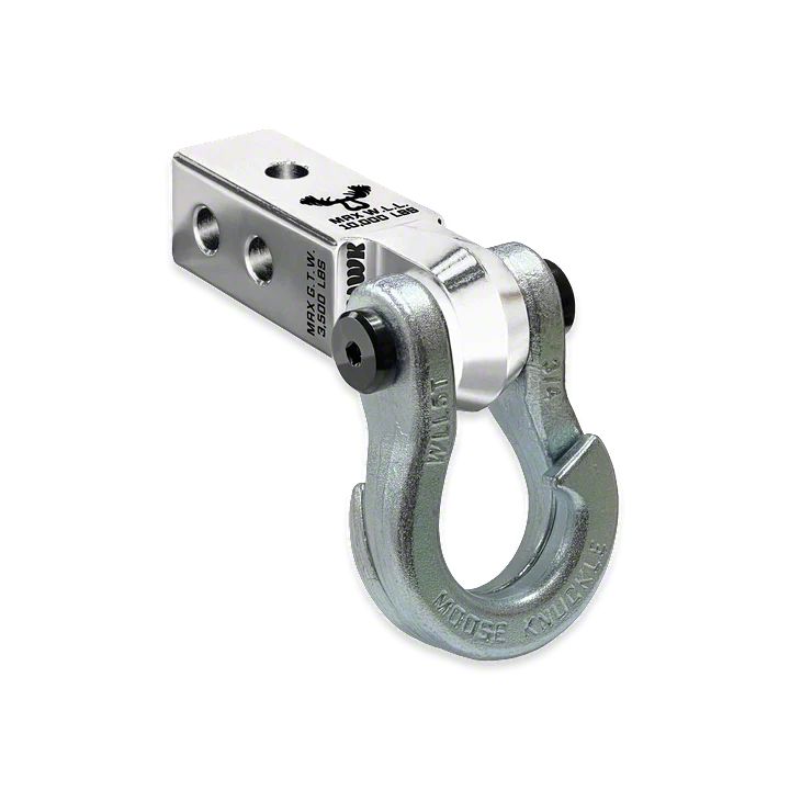 The Jowl Recovery Shackle fits any 2.0 or 2.5 inch D-Ring tow shackle receiver hitch bracket mount with a 7/8" (0.875") pin hole and a mount width of 1-1/4" (1.25") or less.