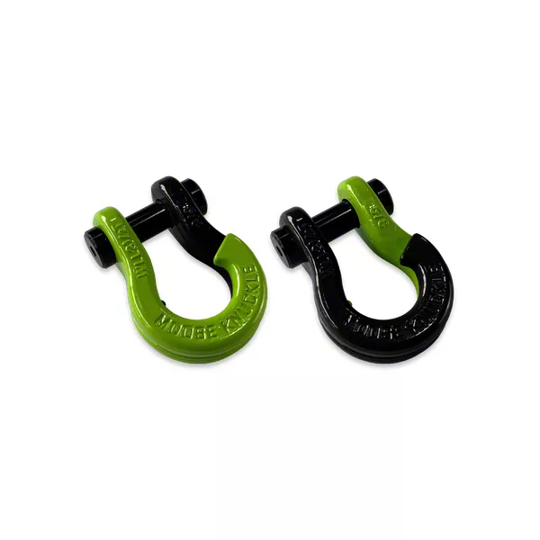 Distinctive Visual Appeal. The striking lime green and deep black hole color scheme of this Moose Knuckle Offroad Jowl Split Recovery Shackle transcends mere aesthetics, serving as a critical functional feature. This bold color combination not only imparts a unique and rugged visual appeal but also significantly enhances the shackle's visibility in a multitude of challenging environments.