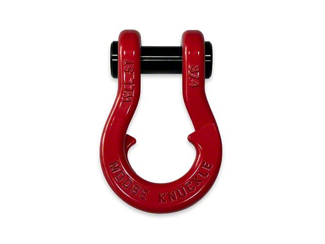 Application. This Moose Knuckle Offroad Jowl Split Recovery Shackle in Flame Red fits universally and requires minimal adjustments.