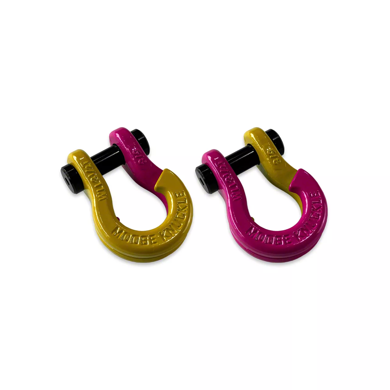 All color options are fully interchangeable. Buy two different color shackles and combine them to match the color scheme of your rig and give your build a more custom accented look. The hooked sides are fully covered with a durable powder coating pantone color matched to popular truck and Jeep colors. The shackle pin is Black Nickel plated and machined from High Strength Grade 8 Carbon Steel.