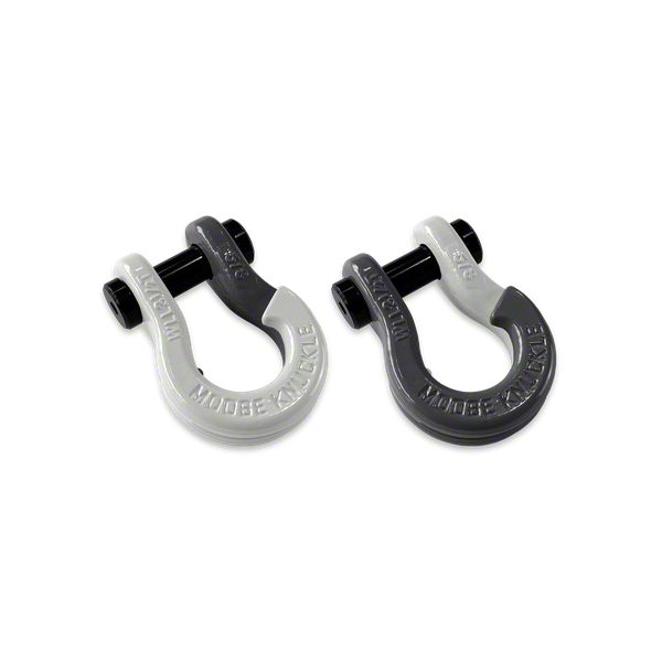 Construction and Appearance. Featuring a unique two-tone finish, the shackle includes powder-coated "Pure White" and "Gun Gray" hooked sides for added visibility and rugged style. The black nickel plated Grade 8 carbon steel pin ensures long-lasting strength and corrosion resistance. Rubber anti-chatter pads and six included nylon isolators reduce noise and protect contact surfaces. Installation hardware is secured with M14 cap screws and fits a standard 1/4-inch socket wrench.