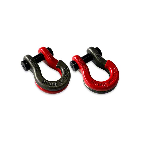 Design. The Moose Knuckle Offroad Jowl Split Recovery Shackle 5/8 Combo stands out with its dynamic Flame Red finish, offering not only functional benefits but also a striking aesthetic that resonates with the adventurous spirit of Jeep owners. This vibrant color significantly enhances the shackle's visibility, making it a breeze to locate and use in diverse conditions, especially in environments like muddy terrains or cluttered off-road situations where visibility is compromised.