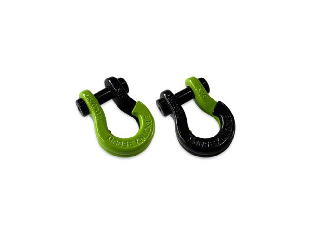 Distinctive Visual Appeal. The striking lime green and deep black hole color scheme of this Moose Knuckle Offroad Jowl Split Recovery Shackle transcends mere aesthetics, serving as a critical functional feature. This bold color combination not only imparts a unique and rugged visual appeal but also significantly enhances the shackle's visibility in a multitude of challenging environments.