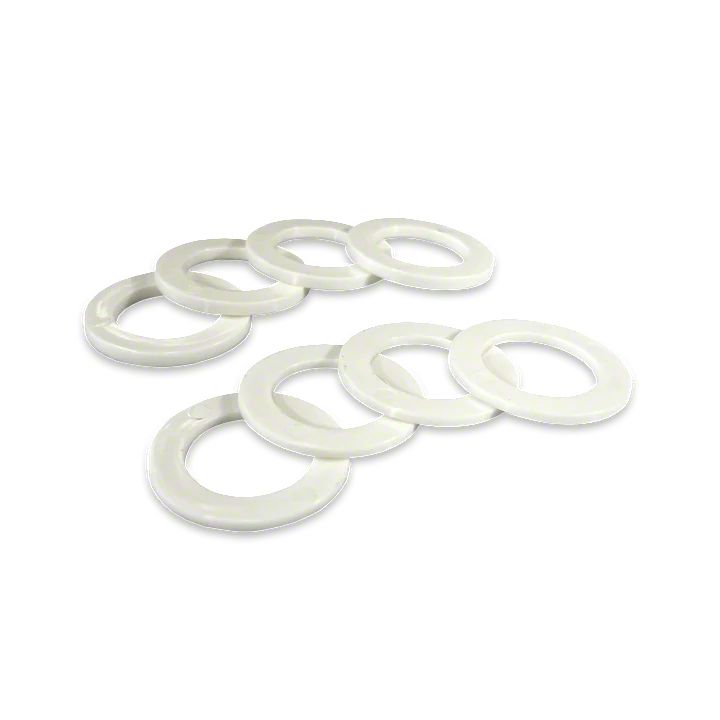 Quieter Driving. Ride more steadily in your vehicle and stop the annoying rattle sound in your ride with this Moose Knuckle Offroad Rattle Rings Shackle Washers; Pure White. Made from hard Nylon, it is a rigid structure that can handle damage and last longer than poly and silicone materials.