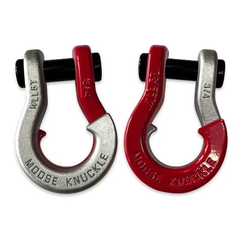 Innovative and Easy-to-Use Recovery Shackles. The Moose Knuckle Offroad Jowl Split Recovery Shackle 3/4 Combo offers a unique and efficient solution for off-road recovery. Featuring a Nice Gal and Flame Red finish, these shackles provide a stylish and functional addition to your recovery gear, allowing for quick, tool-less closed loop recovery without removing the shackles.