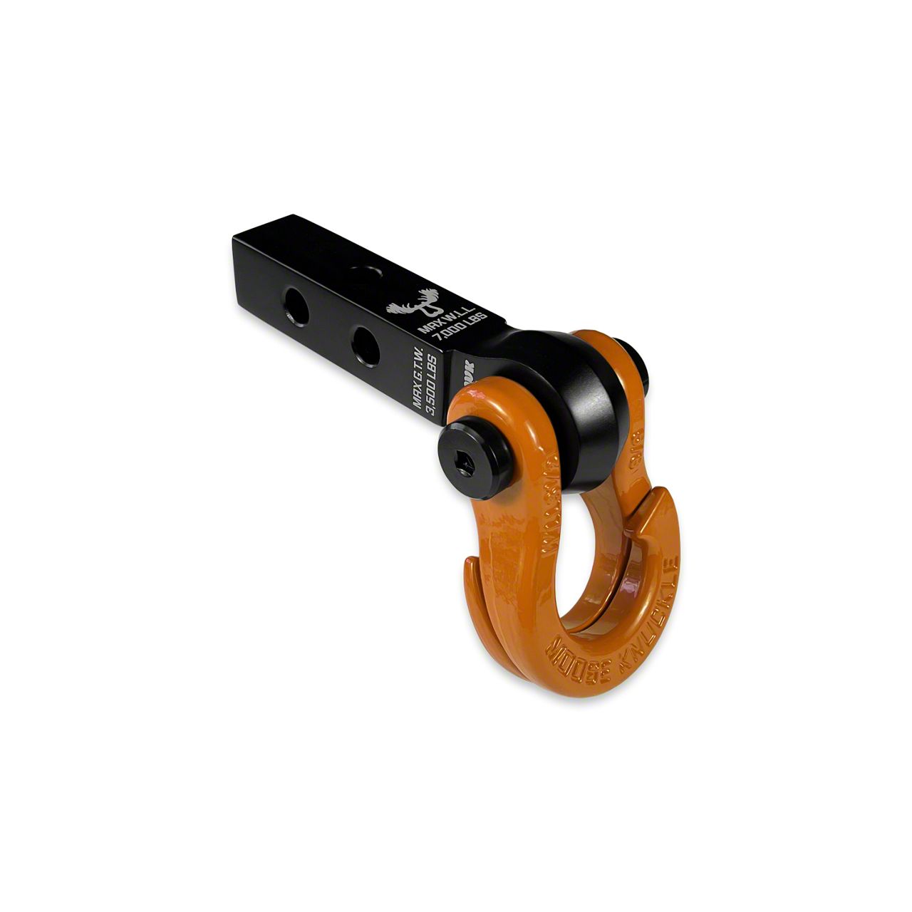 This shackle receiver set up is perfect for your SxS, UTV or ATV with a 1.25 inch hitch tube!JOWL 5/8 SPLIT SHACKLEIntroducing the "patent pending" JOWL SxS 5/8 inch recovery split shackle designed especially for smaller off-road vehicle like SxS's, ATV's and UTV's. Our innovative split "J" recovery shackle design eliminates the need for tools or soft shackles while making rope and strap connections faster eliminating the need to remove your shackles from your bumper or hitch receiver to make a connection, hook up a rope or strap out on the trail. Fast TOOL-LESS closed loop recovery finally made easy!!THIS CHANGES EVERYTHING!Just open up the Jowl shackle hooked sides, insert your recovery rope or tow strap looped end, rotate the end of the tow rope or strap to engage both sides of the shackle, pull tight and you are ready to recover your stuck vehicle.We designed our smaller 5/8 Jowl SxS with a standard bow shackle shape for those SxS, ATV, UTV and Off-roaders who prefer a more traditional shackle look on their rigs. Built in pull angle stops are visual reminders that give you feedback to help you keep your pull angles low keeping your recovery safe and as efficient as possible.The Jowl SxS Recovery Shackle fits any 1.25 or 2.0 inch tow shackle receiver, soft shackle receiver hitch bracket mount or bumper tow point with a 3/4" (0.75") pin hole and a mounting bracket width of 1 inch (1.0") or less.All color options are fully interchangeable. Buy two different color shackles and combine them to match the color scheme of your rig and give your build a more custom accented look. The hooked sides are fully covered with a durable powder coating pantone color matched to popular truck and Jeep colors. The shackle pin is Black Nickel plated and machined from High Strength Grade 8 Carbon Steel.This 3.5T (7,000 LB WLL) forged carbon steel shackle is guaranteed to speed up vehicle recovery so you can spend more time enjoying the trail instead or being stuck in it.Built in rubber anti-chatter pads stop the hooked sides from rattling against each other as you navigate the roughest trails.Each shackle includes six durable nylon shackle isolators. Two 3.0mm thick washers, two 2.0mm thick washers and two 1.0mm washers help you center your Jowl shackle on any width bumper shackle mount, gusset, wench rope or shackle receiver.We made mounting the Jowl easy. The shackle pin is secured by two Metric M14 cap screws that accept any 1/4" socket wrench. Just grab two 1/4 inch ratchets and easily remove or attach the shackle to your vehicle without the need to find the correct allen keys or hex wrenches out on the trail. (Bonus: only one screw needs to be removed to attach or remove the shackle from your vehicle adding to the speed and functionality of this design.)Mohawk Receiver 1.25 - Black LungHang your Moose Knuckle Offroad shackle or tow shackle from our new versatile SxS, ATV and UTV shackle hitch receiver.The Mohawk 1.25 is warm forged using 6082 aluminum with the grain flow orientated to maximize the strength of your connection point providing a work load limit of 7,000lbs.Two hitch pin holes allow for two receiver mounting positions increasing compatibility with any 1.25 inch hitch mounting tube. The third hitch pin hole and included spacer allow you to rotate the receiver 90 degrees so you can mount a hitch ball with a 3/4" shank providing a towing tongue weight limit of 300lbs and a gross trailer weight of 3,500lbs while accepting a Class I/II hitch ball.Most shackle receivers have sharp edges at the connection point which often tear soft shackles, synthetic ropes, tree savers and strap looped ends. The Mohawk 1.25 main mounting hole has a very large radius on the outer edges to reduce abrasion and increase the life of your recovery gear making this ideal for use with any closed loop recovery set up. The spined outer perimeter adds more material where you need it most and gives the Mohawk its aggressive and unique identity.Shackle Specs:Col