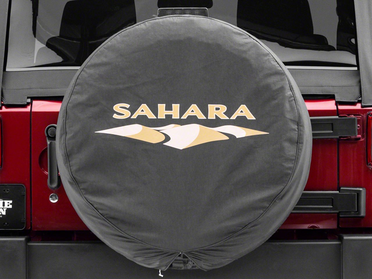 The new JK Sahara tire cover shows off the cool logo design sported by so many Sahara drivers. With this officially licensed Mopar tire cover you can show off the Sahara trim brand to the drivers behind you as well. The sand dunes under the text represent not only the Sahara name, but some great offroading terrain. Features
