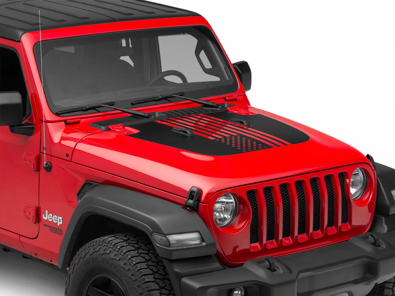 Application. The Mopar American Flag Hood Decal fits on the hood of all 2018-2026 Jeep Wrangler JL models.