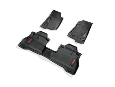Application. This set of Black Mopar All-Weather Front and Rear Floor Mats with Red Jeep Logo is designed to fit all the 2020-2023 Jeep Gladiator JT models.
