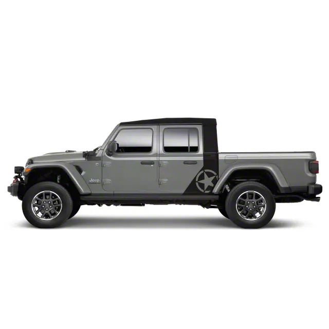 Application. This Mopar Army Star Body Side Graphic; Black fits 2020–2025 Jeep Gladiator JT models.