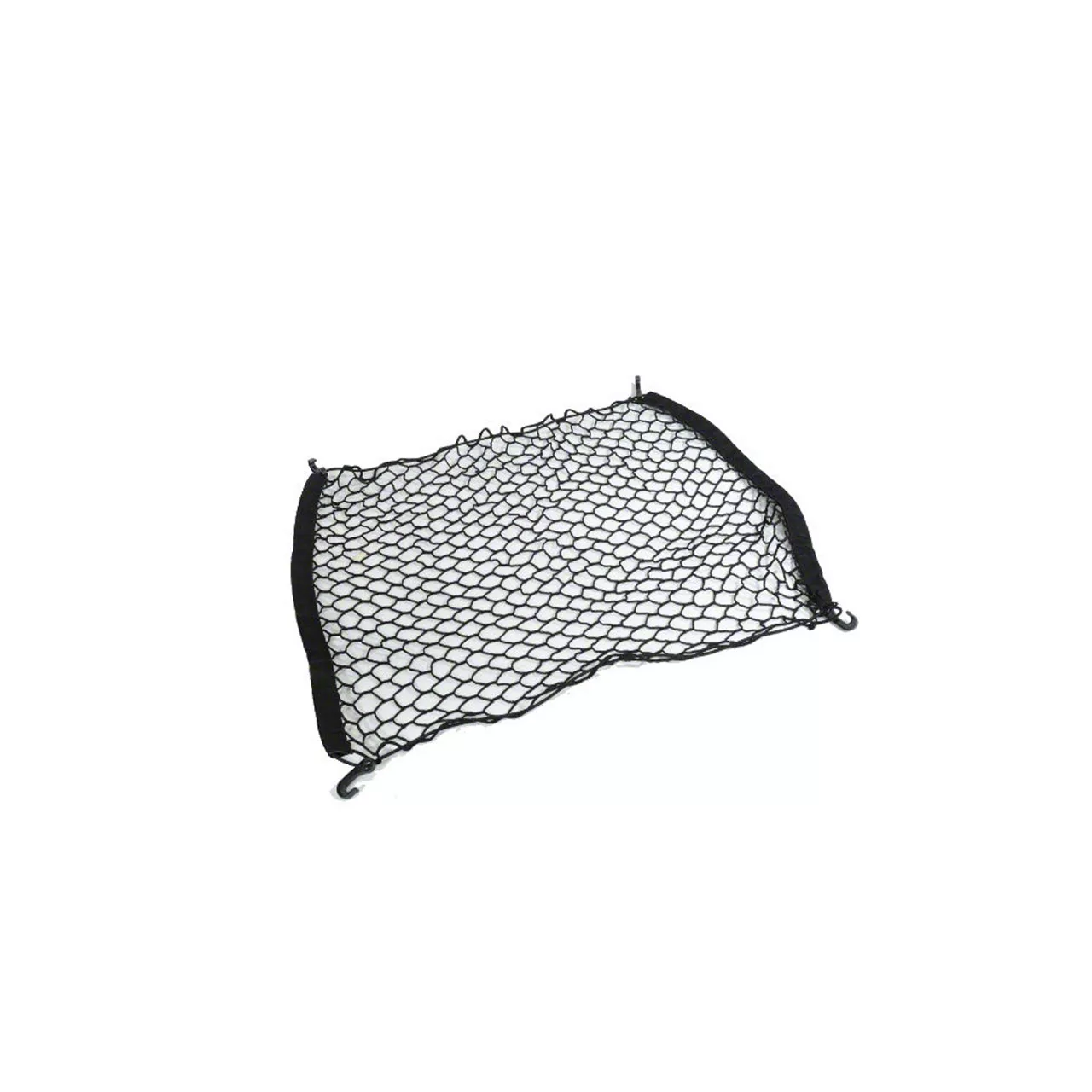 Description: Cargo Net covers and secures cargo to the cargo load floor. The combination of bungee and webbing perimeter allows flexibility for additional cargo while still holding contents secure. This Black net attaches with plastic hooks from each corner to cargo tie-downs or TrailRail sliders. Fits four-door Jeep Wrangler (JL). Custom designed to fit cargo area, this net helps hold cargo in place and is easy to remove. Black nylon net fastens to tie-down loops to help keep loose items secure while maintaining convenient access to cargo area.