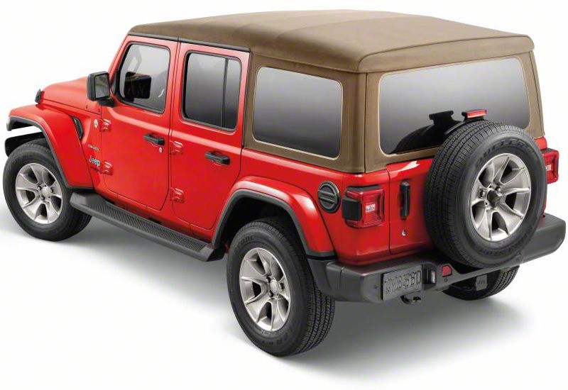 Application. The Mopar Sunrider Soft Top with Tinted Windows; Tan Twill is manufactured to accommodate all 2018-2026 Jeep Wrangler JL 4 Door models.
