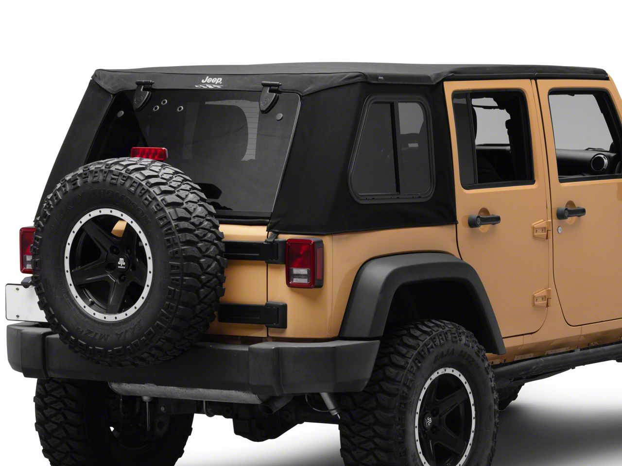 Application. Mopar JEEP Trektop Pro Hybrid Slantback Soft Top; Black Twill is designed to fit 2007-2018 Jeep Wrangler JK 4-Door models.