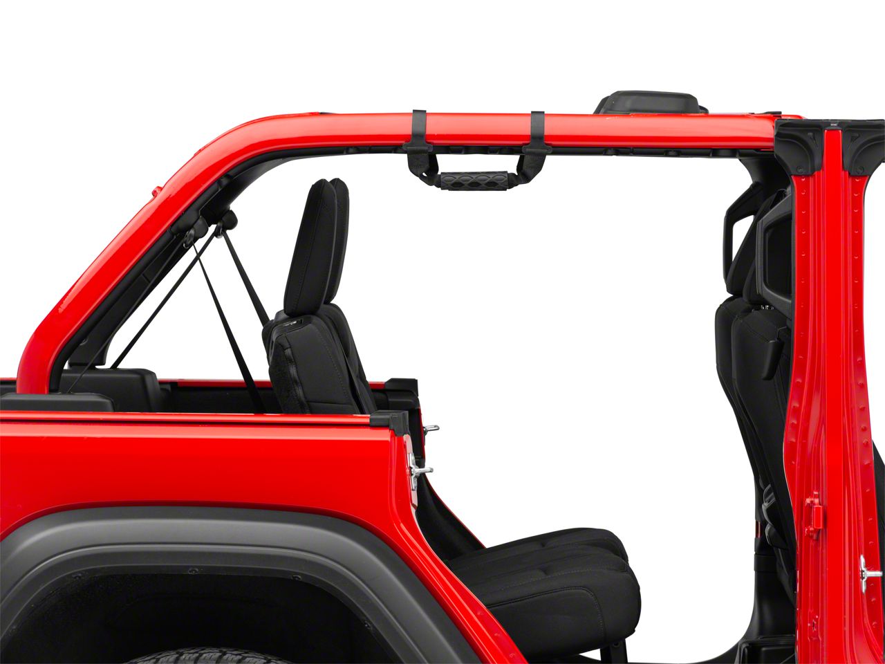 Hardcore Construction. Thanks to the high-strength construction of these grab handles, you'll be able to rely on their durability for a long time to come. Featuring a reliable steel build that is designed with a sculpted overmold that offers added comfort when gripped, these handles will continue to provide the high-quality stability your passengers need wherever you decide to venture. Their custom-made design easily attaches to your Jeep's sport bar for your convenience.