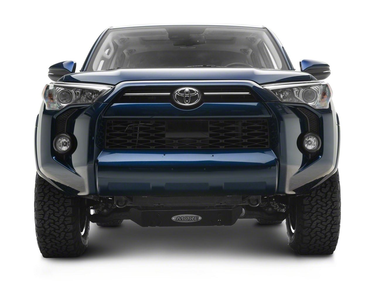 Heavy-Duty Shielding. Provide protection and styling to your 4-Runner's underside axles and components with this M.O.R.E. Front Skid Plate; Black. Made to surround and block your debris from damaging or causing blockages in the clockwork of your rig, it offers an innovative design that surround the assembly but still promotes smooth movement and airflow to the underside as well as easy servicing with its access oil change door.