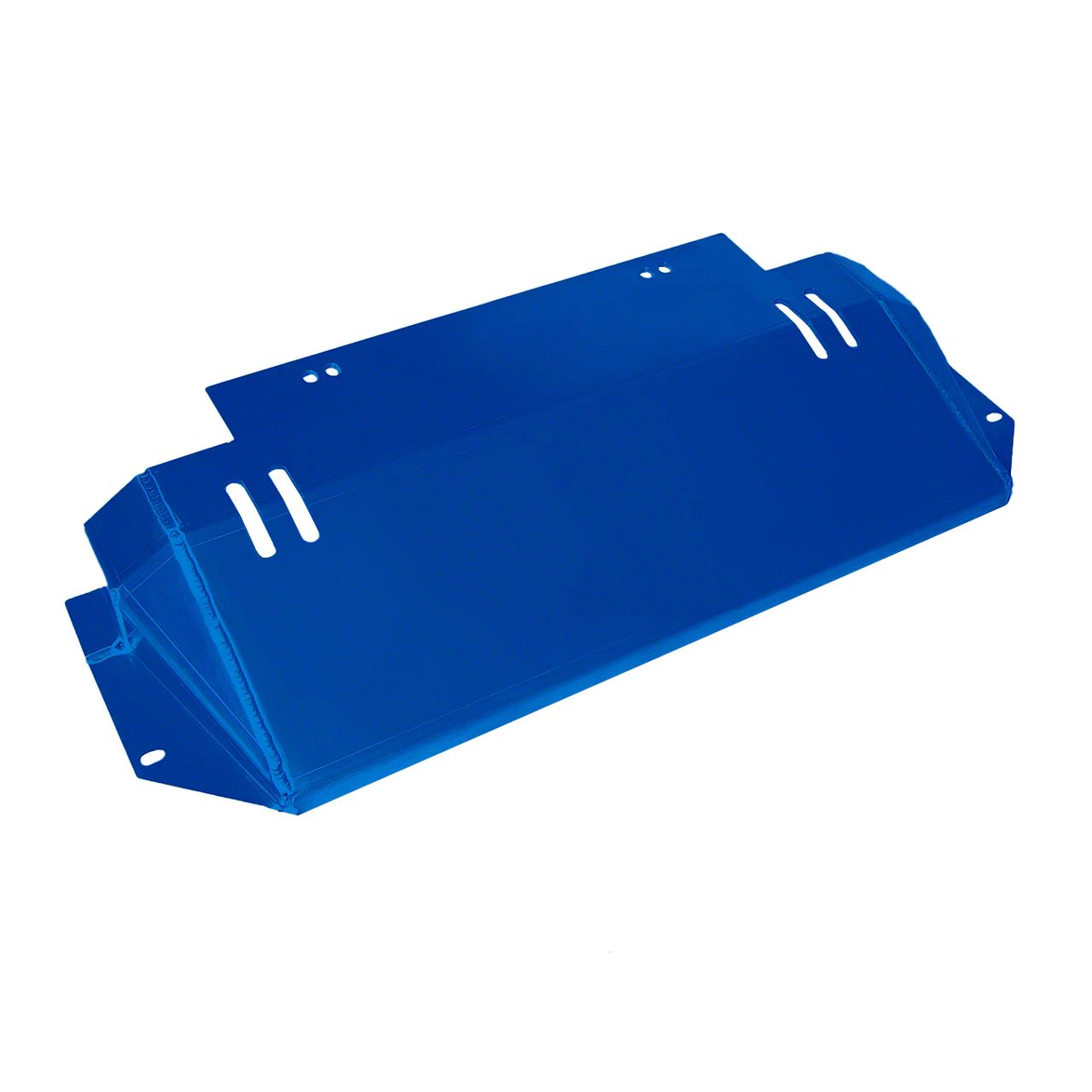 Construction and Appearance. Featuring a light blue finish, this skid plate is crafted from 3/16-inch steel plating for superior strength. The corrosion-resistant coating ensures durability, even in extreme off-road conditions.