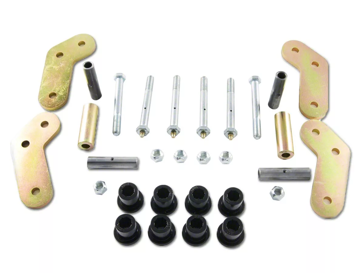Unparalleled Performance. The bolts are drilled and have a zerk that allows the grease to easily flow into channeled black polyurethane bushings. With crimp-lock nuts for a durability that will never give up, these heavy-duty boomerang, lubeable shackles will set your Jeep apart on all your off-road adventures.