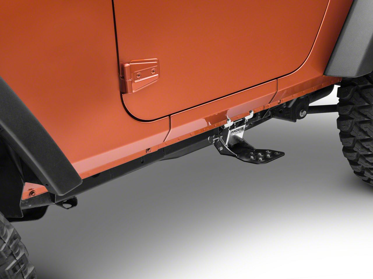 Construction. This part from M.O.R.E. is made from durable materials and is covered in a strong, long-lasting zinc plating to assure you can use it for many years to come. You can install this hide-a-step underneath either of your Jeep's front doors.
