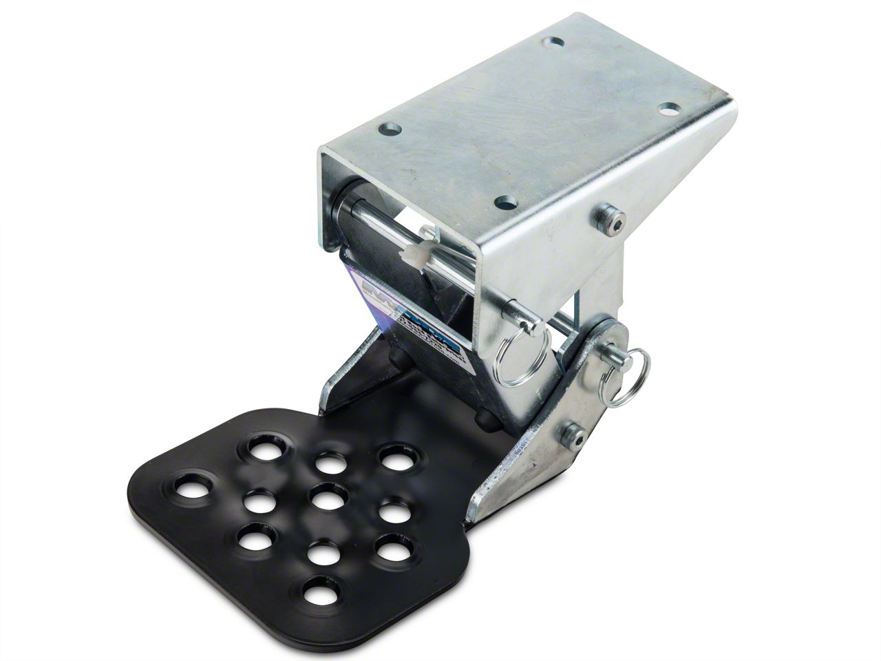 Construction. Mountain Off-Road Enterprises' Hide-a-Step is made out of thick, tough steel to provide a reliable step up, and folds when not in use. Pulling 2 pins permits the step to be removed entirely. This step lowers the step up by 11 inches. It is made in the USA.