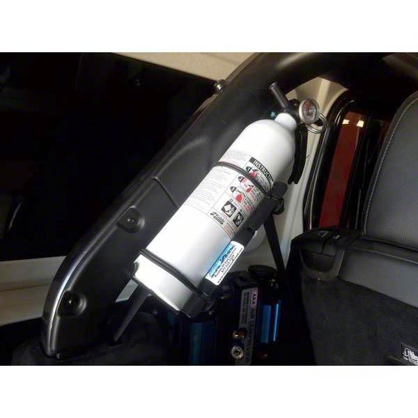 Efficiently Mount Your Extinguisher. Having a fire extinguisher in your Wrangler is always a good idea, particularly if you do a lot overlanding or camping. It also follows that if you have an extinguisher, this should always be visible and within reach. This is where the M.O.R.E. Fire Extinguisher Bracket comes in. This fire extinguisher mounting bracket is designed to install onto your roll bar on the driver or passenger side ensuring your extinguisher is always within reach. Likewise, this fire extinguisher bracket uses ball-ended bungee cord loops to effectively hold your extinguisher for fast deployment when needed. Moreover, this mounting bracket is designed for use with a standard 5-B:C and 10-B:C fire extinguisher making it ideal for virtually all safety applications.