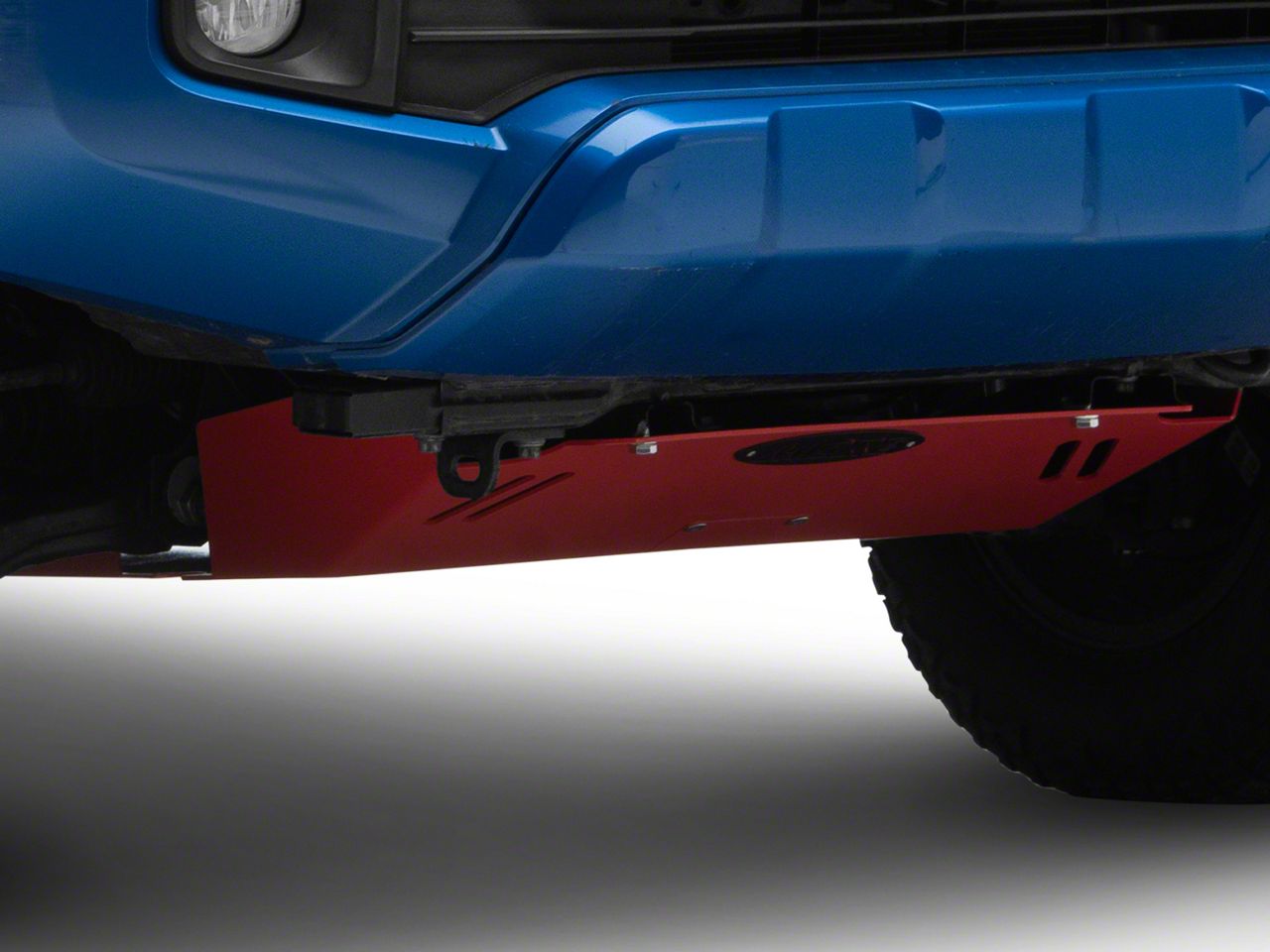 Fierce Off-Road Armor. Let your Toyota Tacoma confidently course through the challenging terrains knowing that the front transfer case has a reliable shield. Use this M.O.R.E. Red Skid Plate to durably protect your vehicle’s undercarriage from rocks, tree stumps, and other trail obstacles. Furthermore, it comes in an intense red that enhances your truck’s appealingly powerful presence.