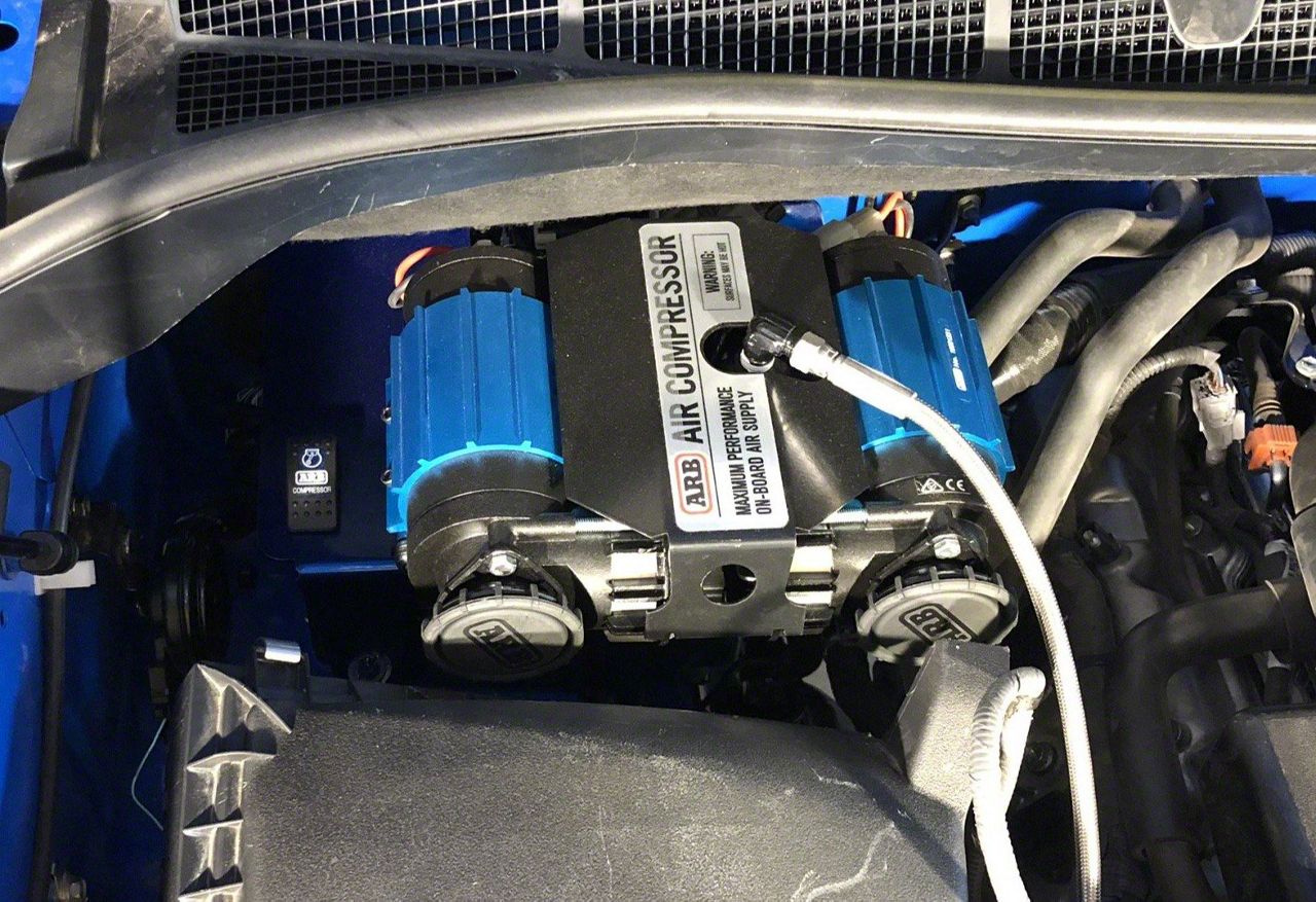 Simple Installation. With its precise, CNC-machined form, this ARB Twin Compressor and Tank Red Under Hood Mount bolts to the pre-existing holes on your vehicle. The bolt-on installation takes a few minutes to complete with the use of simple hand tools.