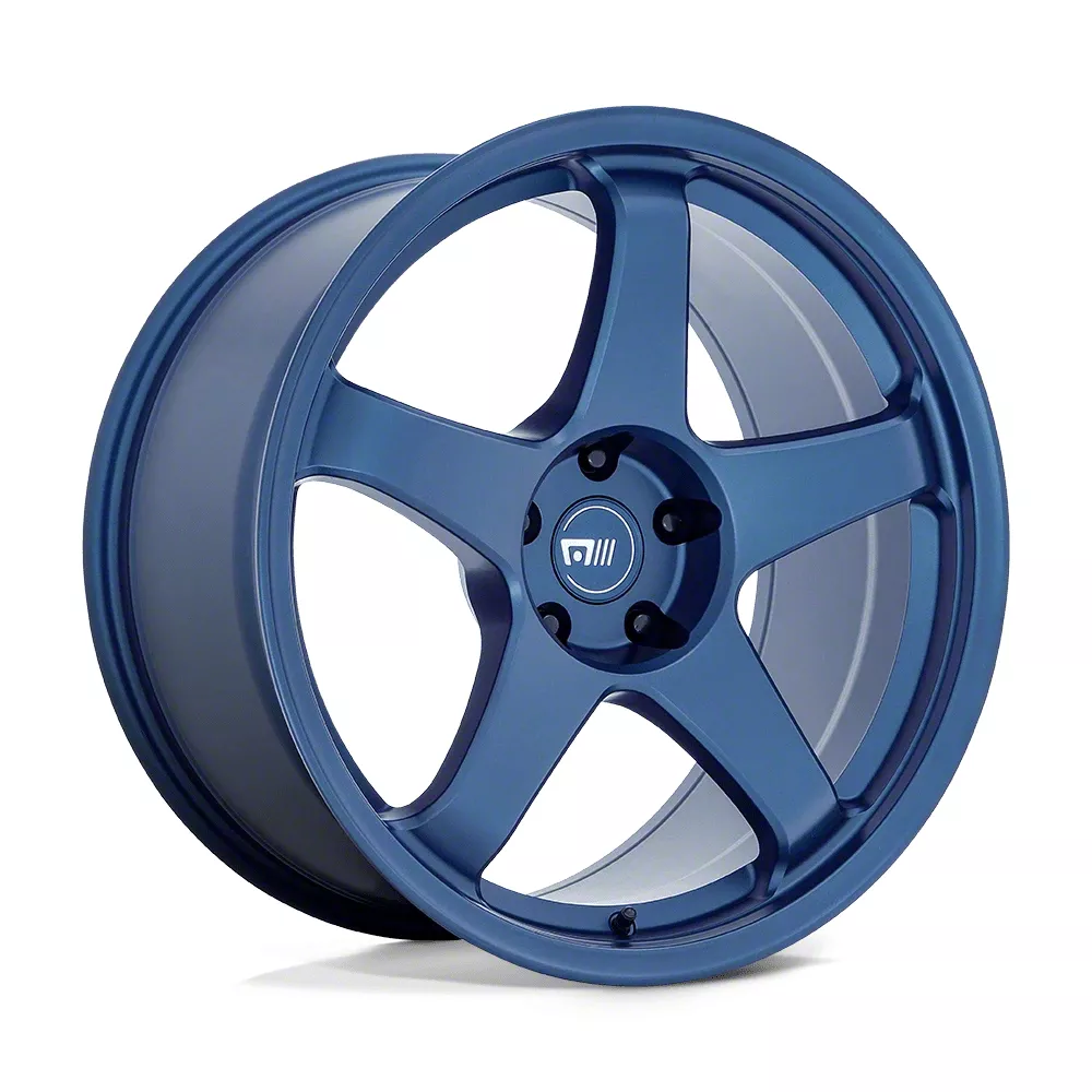 Motegi CS5 Satin Metallic Blue Wheel; 18x9.5 The Motegi CS5 Satin Metallic Blue Wheel combines a sleek, sophisticated design with premium construction that enhances the visual appeal and complements a wide range of vehicle styles. This wheel is perfect for those seeking to make a bold statement while maintaining elegance and robustness.