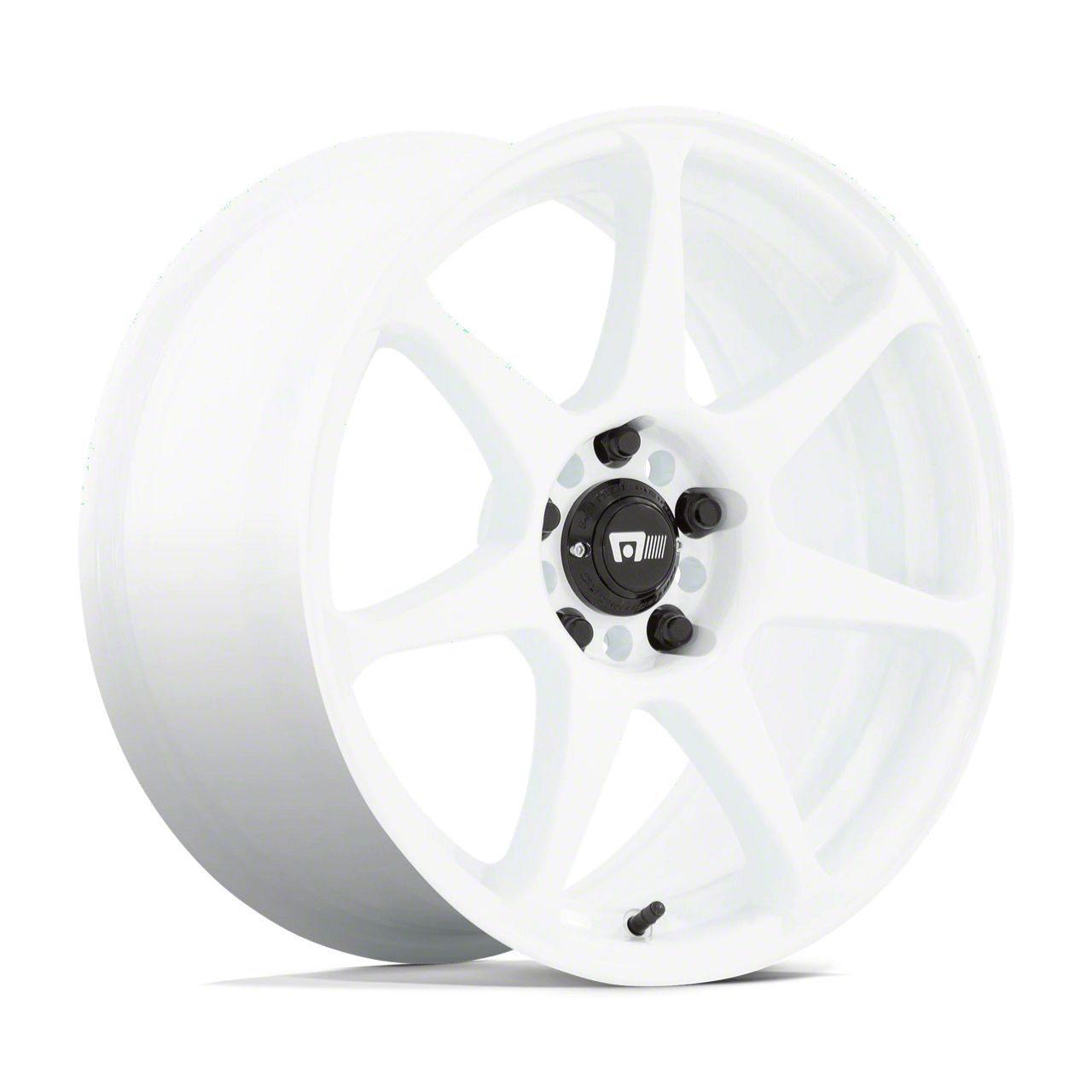 The 17x8 Motegi Battle White Wheel is completed in a high-quality, contrasting white finish for an aggressive appearance that will turn heads. There is a durable clear coat that withstands the rigors of daily driving.