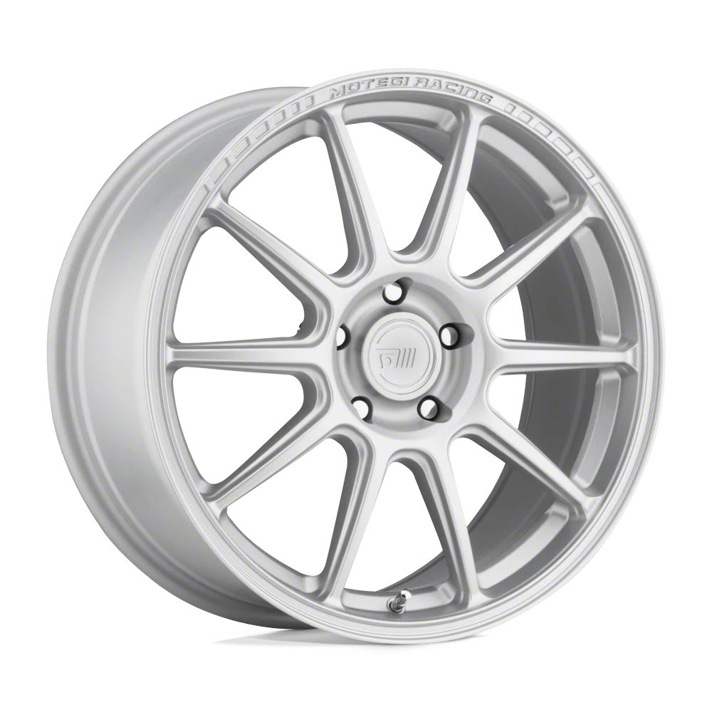 Motegi SS10 Hyper Silver Wheel; 18x8.5 The Motegi SS10 Hyper Silver Wheel combines a sleek, sophisticated design with premium construction that enhances the visual appeal and complements a wide range of vehicle styles. This wheel is perfect for those seeking to make a bold statement while maintaining elegance and robustness.