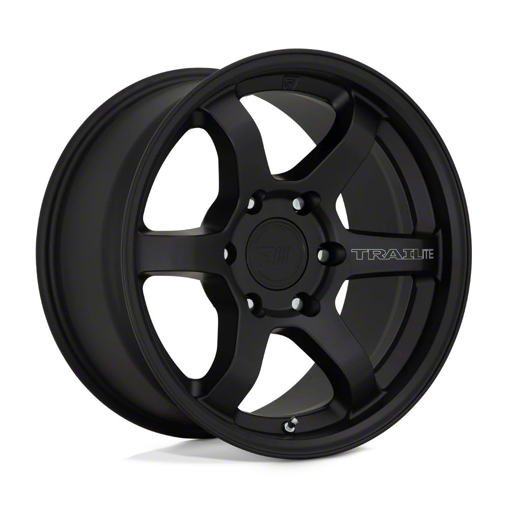 Motegi Trailite Satin Black Wheel; 17x8.5 The Motegi Trailite Satin Black Wheel combines a sleek, sophisticated design with premium construction that enhances the visual appeal and complements a wide range of vehicle styles. This wheel is perfect for those seeking to make a bold statement while maintaining elegance and robustness.