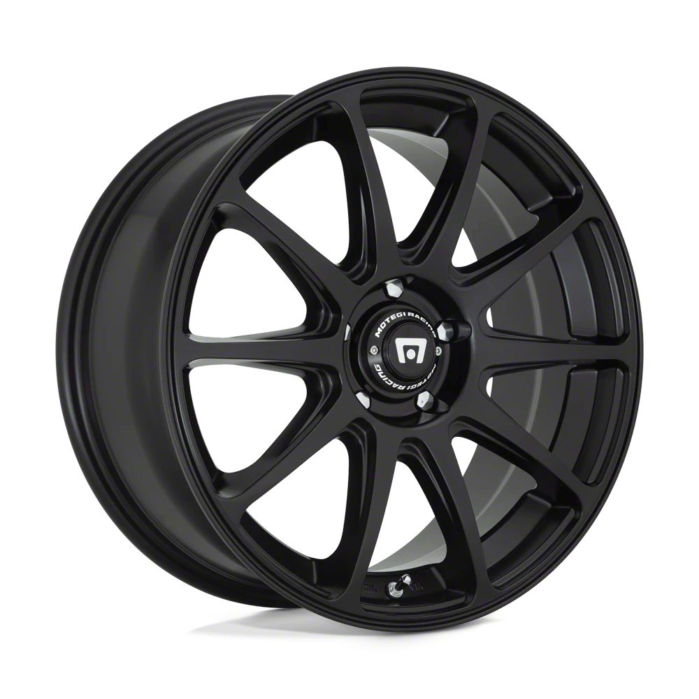 Motegi CS10 Satin Black Wheel; 18x8 The Motegi CS10 Satin Black Wheel combines a sleek, sophisticated design with premium construction that enhances the visual appeal and complements a wide range of vehicle styles. This wheel is perfect for those seeking to make a bold statement while maintaining elegance and robustness.