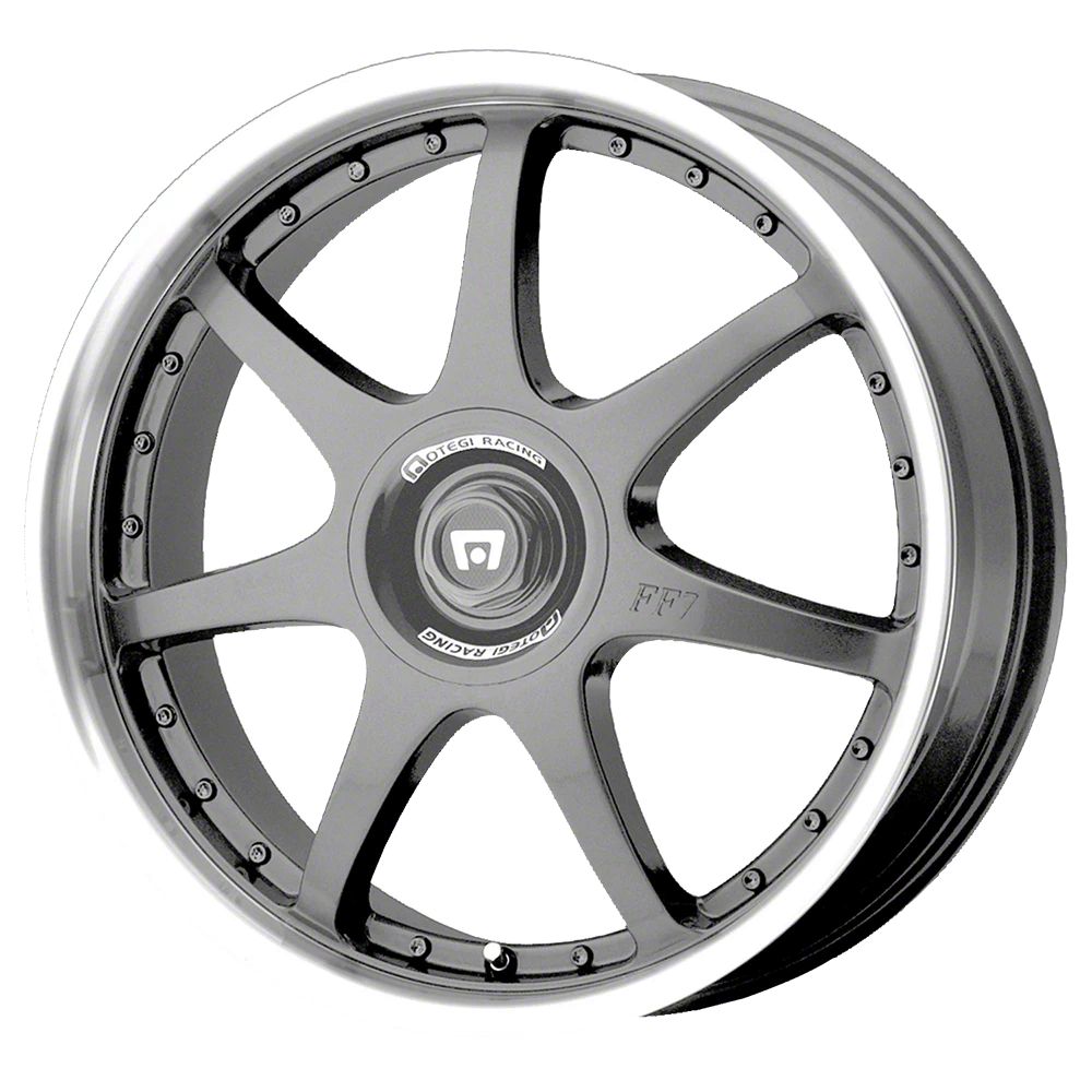 The 16x7 Motegi FF7 Gunmetal Wheel is completed in a high-quality gunmetal gray finish for an aggressive appearance that will turn heads. There is a durable clear coat that withstands the rigors of daily driving.