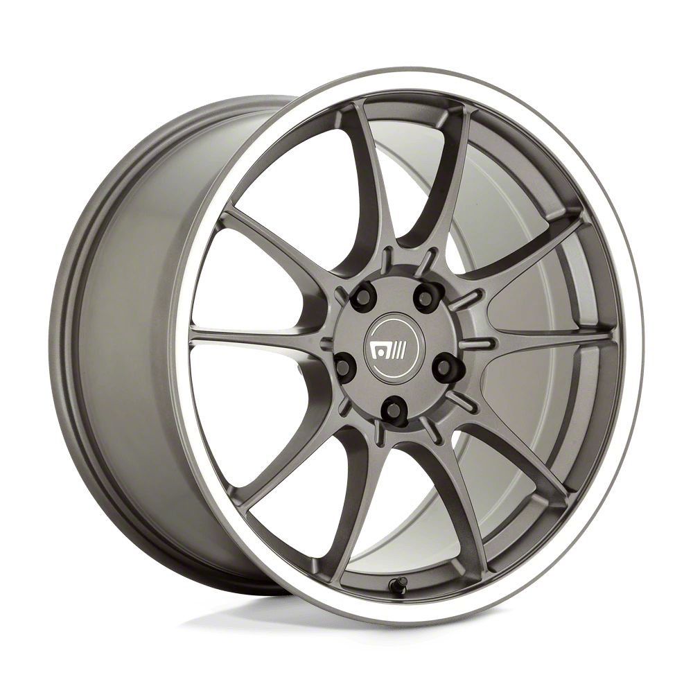 Motegi SS5 Gunmetal with Machined Lip Wheel; 19x8.5 The Motegi SS5 Gunmetal with Machined Lip Wheel combines a sleek, sophisticated design with premium construction that enhances the visual appeal and complements a wide range of vehicle styles. This wheel is perfect for those seeking to make a bold statement while maintaining elegance and robustness.