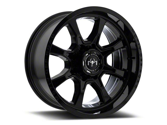 Motiv Offroad Glock Gloss Black Wheel; 20x9. The Motiv Offroad Glock Gloss Black Wheel offers a striking balance of style and refinement. Its unique design accentuates the vehicle's aesthetic, while the premium construction underscores its robust nature. This wheel is a perfect choice for those seeking both elegance and a strong visual statement.