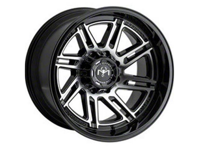 Motiv Offroad Millenium Series Gloss Black with Chrome Accents Wheel; 17x9 offers a striking balance between style and durability. The design speaks to the brand's commitment to quality, enhancing the vehicle's appearance with its distinct look. This wheel, with its unique aesthetics, is ideal for drivers who appreciate a blend of modern design and robust functionality.