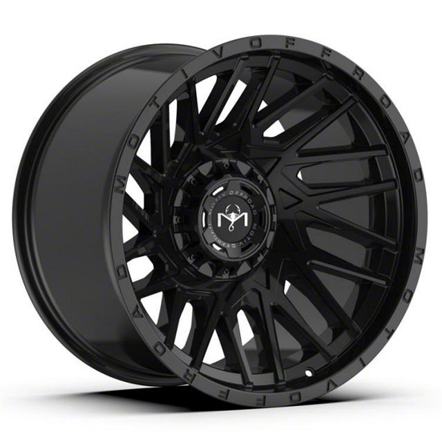 Motiv Offroad Mutant Gloss Black 5-Lug Wheel; 20x9; 18mm Offset - This wheel's elegant design will certainly enhance your vehicle's aesthetic, complementing its luxury and performance. The unique styling of this wheel makes it an ideal choice for a standout quality of your ride, reflecting the premium quality associated with the Motiv Offroad brand.