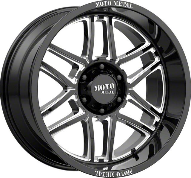 This 20x12 Moto Metal Folsom Gloss Black Milled 6-Lug Wheel is completed in a high-quality gloss black finish with steel milled accents that will make the wheel the envy of everyone. There is a durable clear coat that protects against driving hazards.One-Piece Cast Aluminum Construction. This wheel is manufactured using gravity casting. Gravity casting is the process of pouring a molten aluminum alloy into a wheel mold or form utilizing the earth's own gravity to help fill the mold. The result is a strong, durable wheel that has the same good looks as a more expensive wheel, at a fraction of the price.